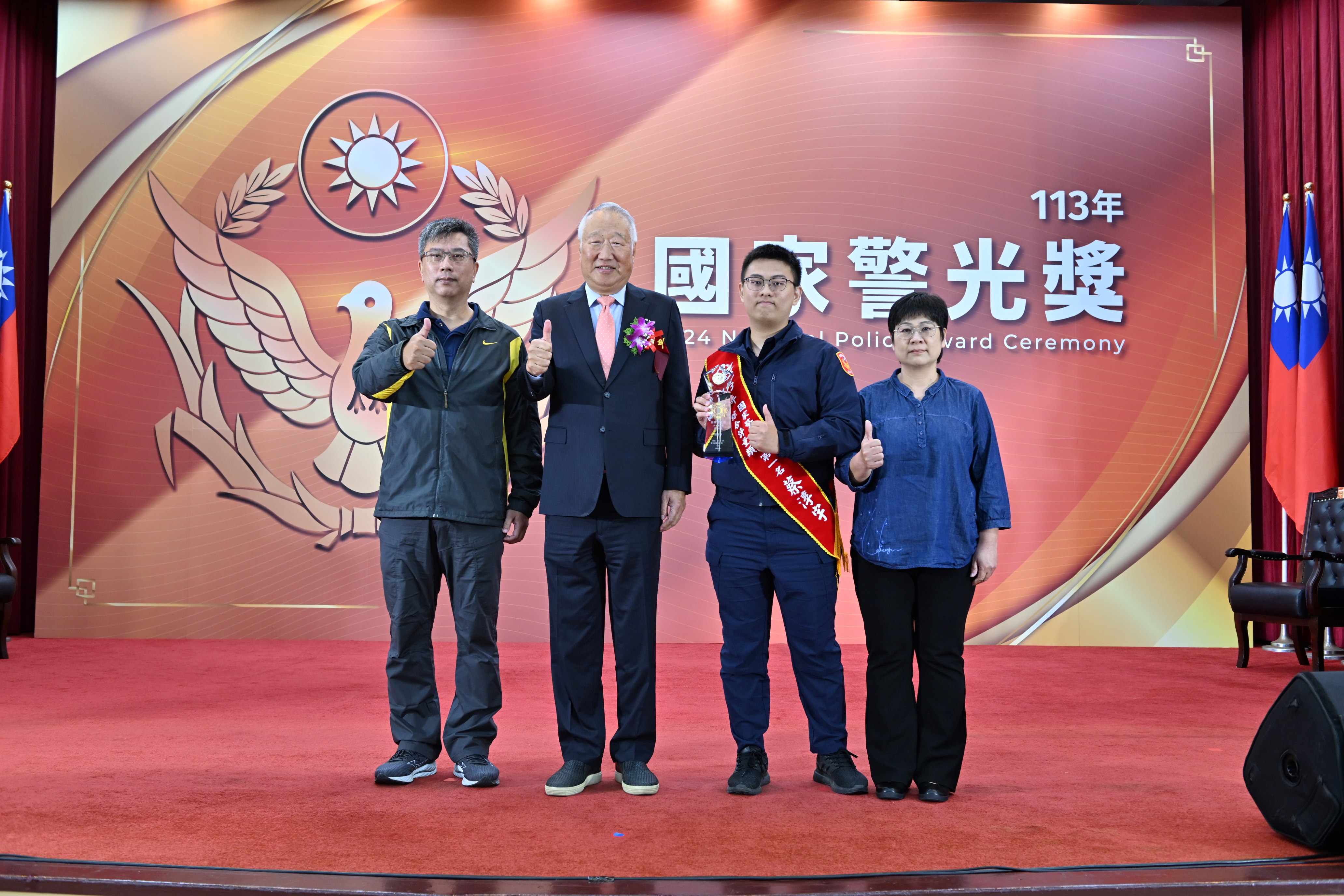 今年警政署從全國各警察機關薦報87個團體及98位個人績優事蹟中,甄選出30個績優團體及52位個人績優警察同仁,邀請內政部劉部長世芳、中華民國警察之友總會蔡理事長明忠、葉最高顧問國一及郭監事會召集人台強,與警政署張榮興署長共同頒發獎座給獲獎的優秀警察團隊及人員。