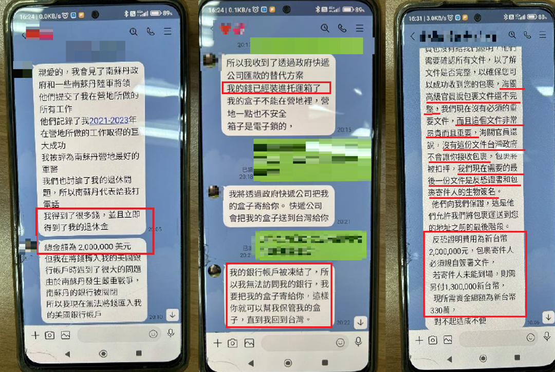112年12月初民族路派出所員警,接獲臺灣銀行彰化分行通報有民眾疑似遭詐欺,該名年約60歲退休王姓婦人,於網路上認識網友自稱蘇丹軍醫,即將申請退休來台共同生活,請王女代收裝有200萬美金之退休金包裹,後續告知因包裹被海關查扣,故請王女繳納新臺幣330萬元之保證金以利贖回,否則高額退休金將被查扣,幸行員機警於王女臨櫃提款時發現有異,立即通報員警到場共同攔阻民眾提款新臺幣330萬元,避免其面交予詐騙集團。