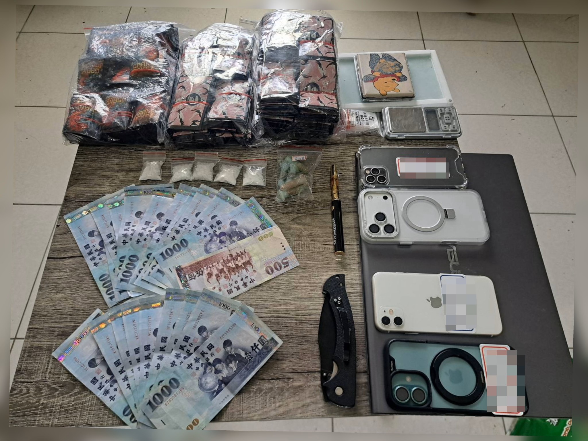 三、查獲地點:新北市汐止區、中和區、板橋區、臺北市中山區、信義區、桃園市中壢區。